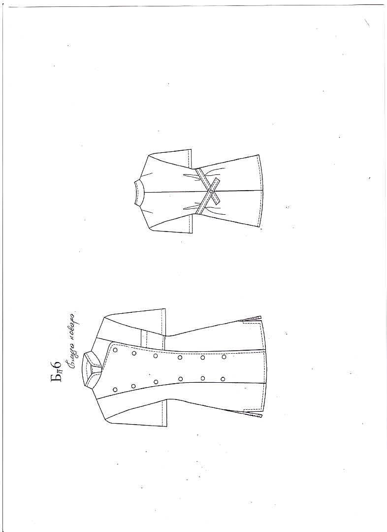 Полотно фартука на поясе, выполнено по долевой с запахом на спинке, на полочке отлетная Pin Up из отделочной ткани, по шву кокетки кант и из-под кокетки бейки, расположенные вертикально